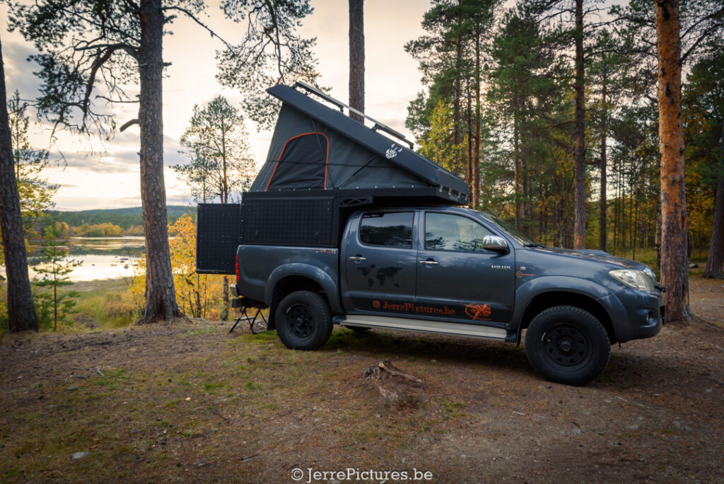 Scattered throughout the forest are several nooks, perfect for a break with a view of the water. Well, ‘perfect’ if your overlander likes standing a bit askew – sleeping on a slope can be part of the charm, right? Camper owners, beware: this is not a spot for long vehicles with anything trailing behind the rear wheels. Unless you’re into introducing a new kind of extreme sport: extreme parking. And I actually advise against it for any camper that isn’t a bit higher off the ground! (if you notice that it can be a problem … drive backward back on the road)