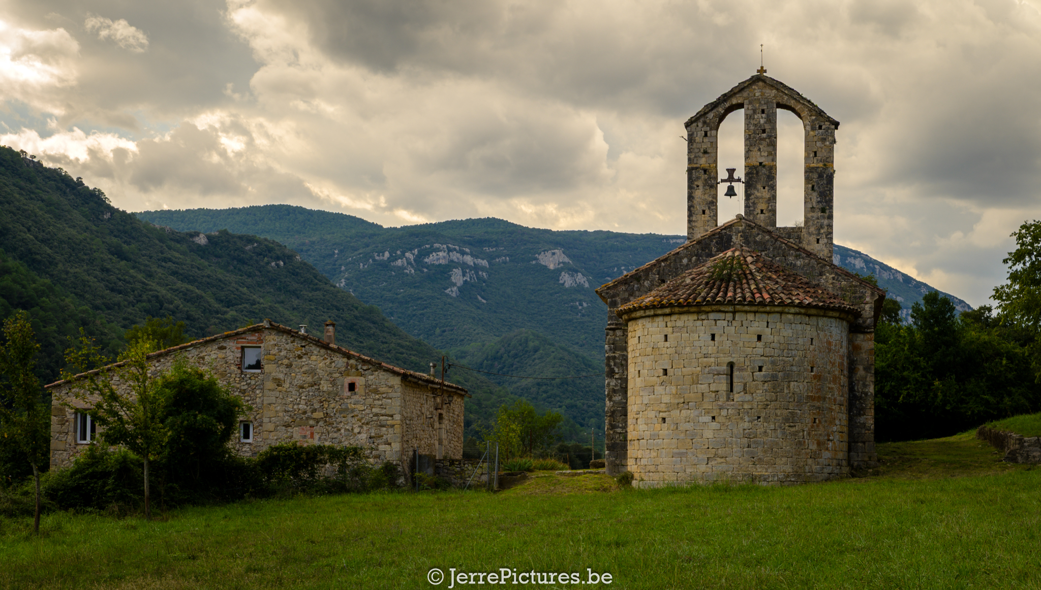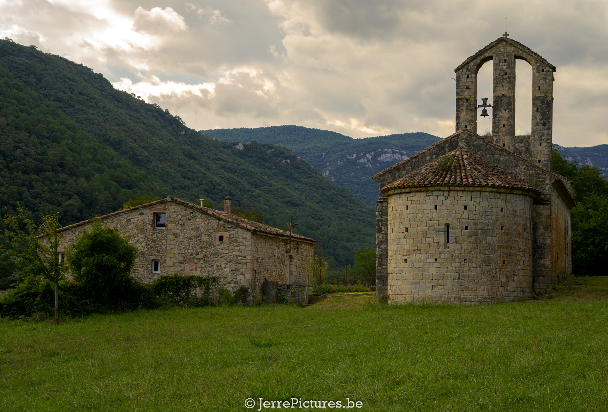High in the hills of Alta Garrotxa lies Sant Andreu de Gitarriu — a simple Romanesque chapel with 13th-century roots, though possibly older. Originally known as Sancti Andree de Guitarrivo (1228), the place breathes history. The name “Gitarriu” may derive from a now-vanished stream or a Germanic personal name.