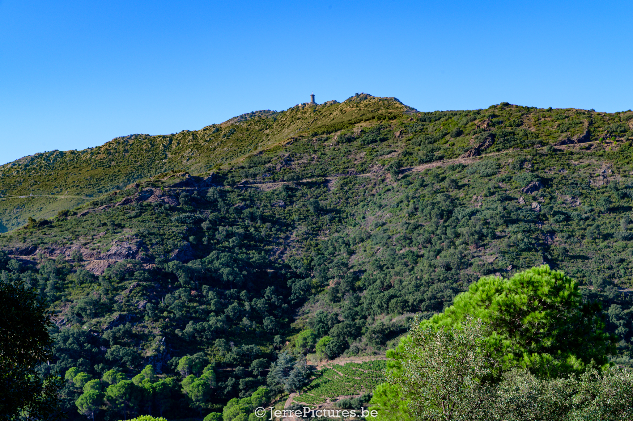 Next, we passed Mirador de Madeloc — the forward outpost of an old watchtower perched on a mountain peak, offering a spectacular 270-degree view over the Côte Vermeille and the Pyrenees.